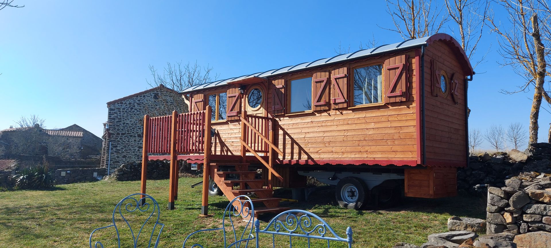 Basaltik ‘ Roulotte vous accueille sur les hauteurs de Massiac près de la chapelle Ste Madeleine. Roulotte de charme entièrement rénovée avec différentes essences de bois pour l’accueil de 4 personnes ou bien en couple pour un week-end en amoureux….