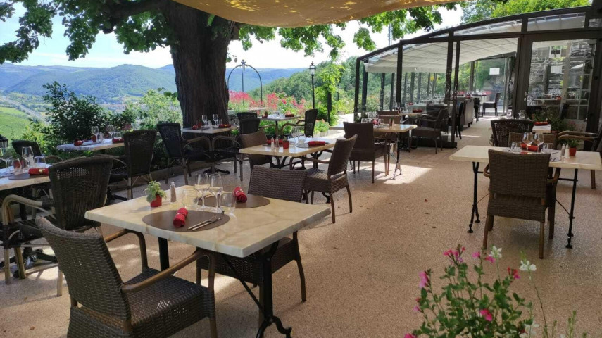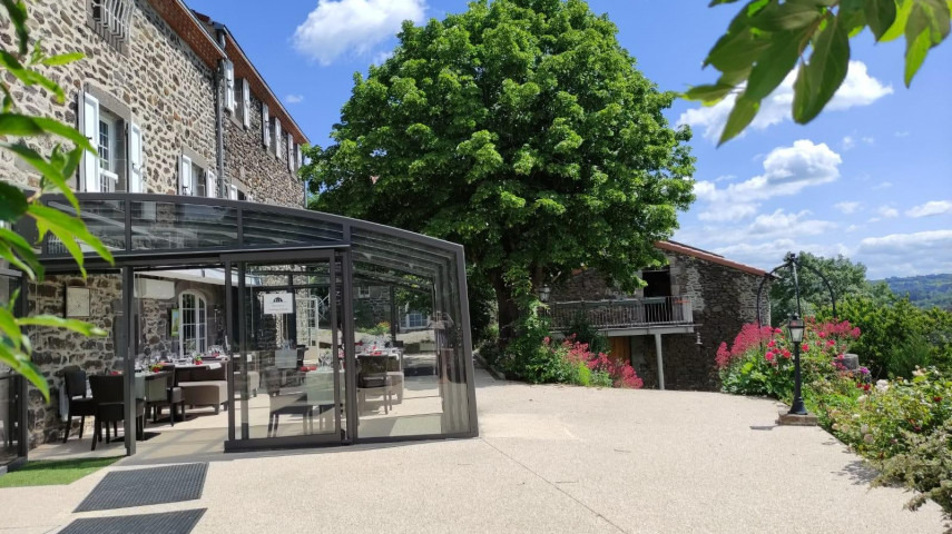 Une terrasse de 160 m2 dont une partie ombragée par un grand tilleul permet de d’installer 30 couverts environ et une véranda de 40 m2 pouvant accueillir jusqu’à 30 couverts.