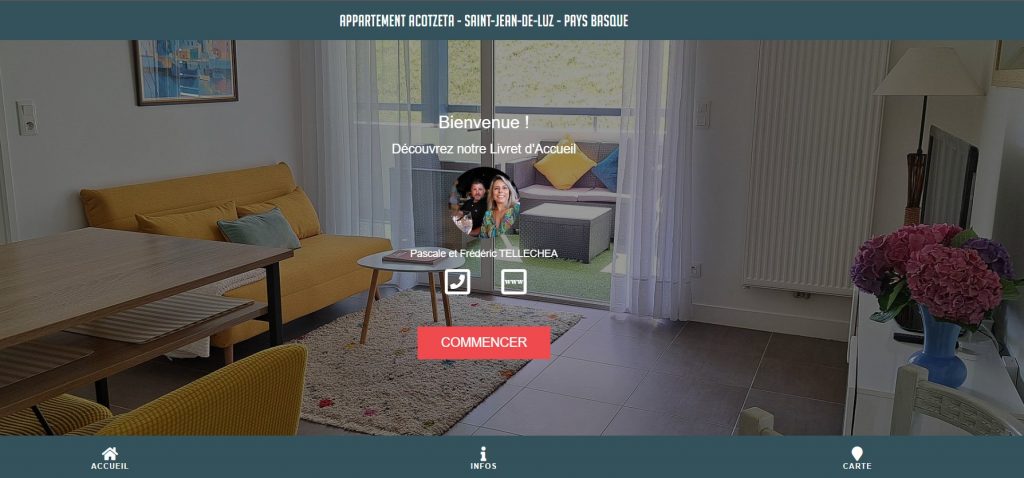 - Un livret d’accueil personnalisé : en version numérique, à envoyer à vos clients ou prospects. Vous pourrez ainsi mettre en avant vos recommandations et bons plans pour découvrir le territoire auprès de vos visiteurs; mais aussi toutes les infos pratiques à leur partager, pour un séjour réussi et un client satisfait !